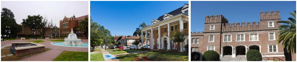 佛罗里达州立大学所在的城市塔拉哈西(Tallahassee)距离墨西哥湾约 40 公里,是所名副其实的大学城。Tallahassee 位于 Florida 西北部的狭长走廊,人口约18万。附近有许多世界闻名的旅游景点,如奥兰多的迪斯尼乐园和环球影城。Florida州的天气宜人,终年都可以从事户外活动,例如:冲浪、玩帆船、游泳、水上摩托车等等。另外这里有很多州立及国立公园、国家野生生物保区。